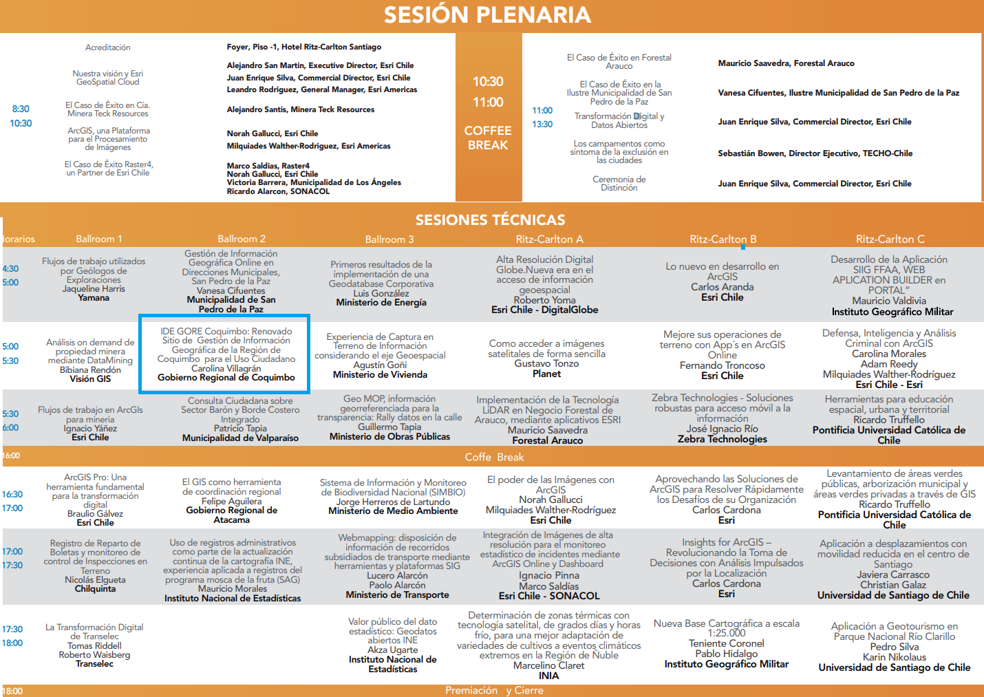 El Gobierno Regional de Coquimbo participó por medio de una presentación denominada ?Evolución del sitio IDE GORE COQUIMBO, Características, Herramienta de Gestión, y muestra de Visores Relevantes con tecnología Esri?, el día 14 de mayo de 2019 en el encuentro de Usuarios 2019, organizado por la Empresa de Tecnología Espacial Esri Chile S.A.. El Encuentro tecnológico tenía como objetivo inspirar tu conocimiento, acción y pensamiento geoespacial, éste se desarrolló en el Hotel The Ritz Carlton en Las Condes, Santiago de Chile.
